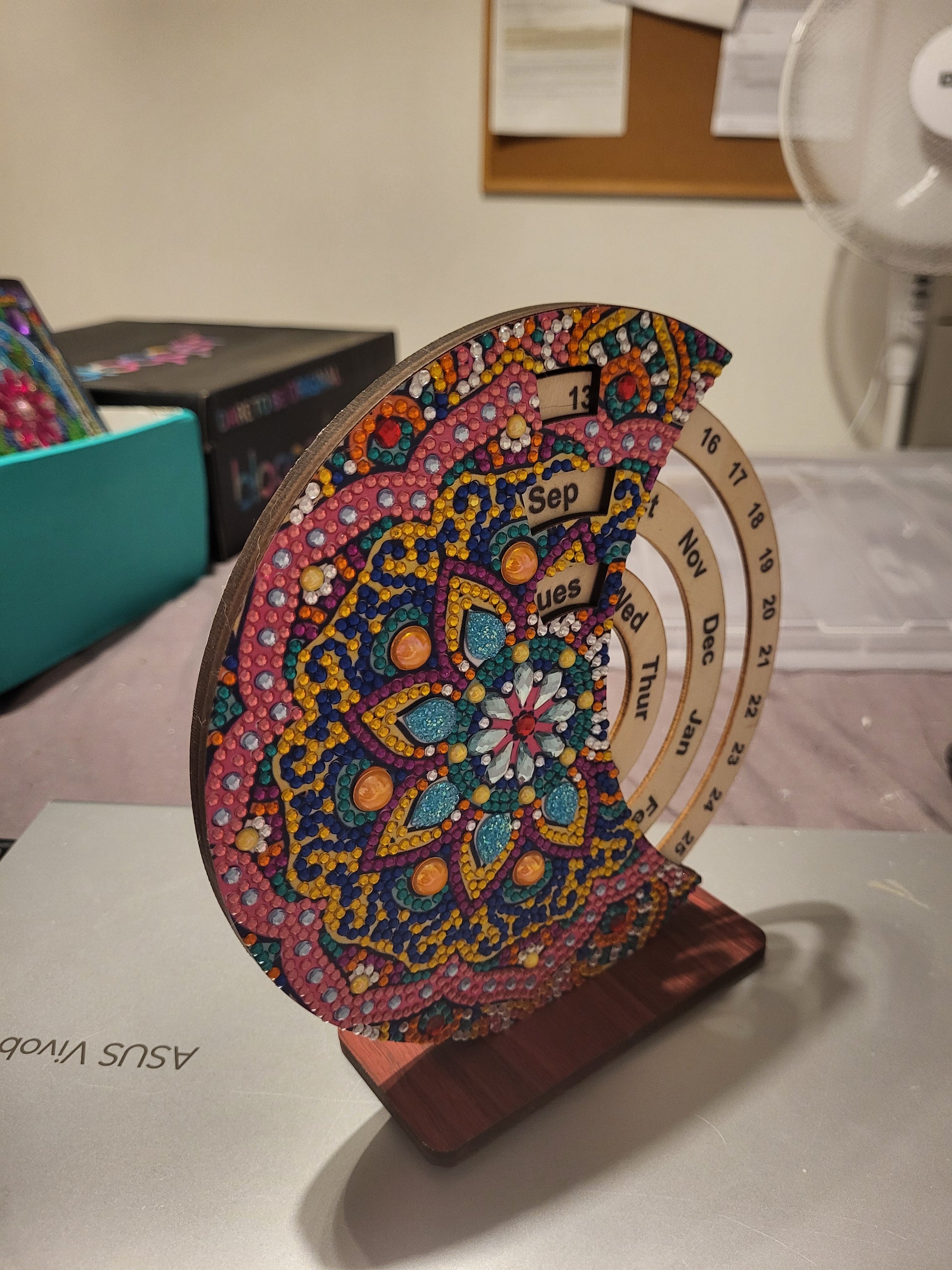 Stand is detachable, so will be included in package during postage. You can change the days/dates using the circular wheels shown in photos. Diamonds have been sealed to prevent any pop-offs!