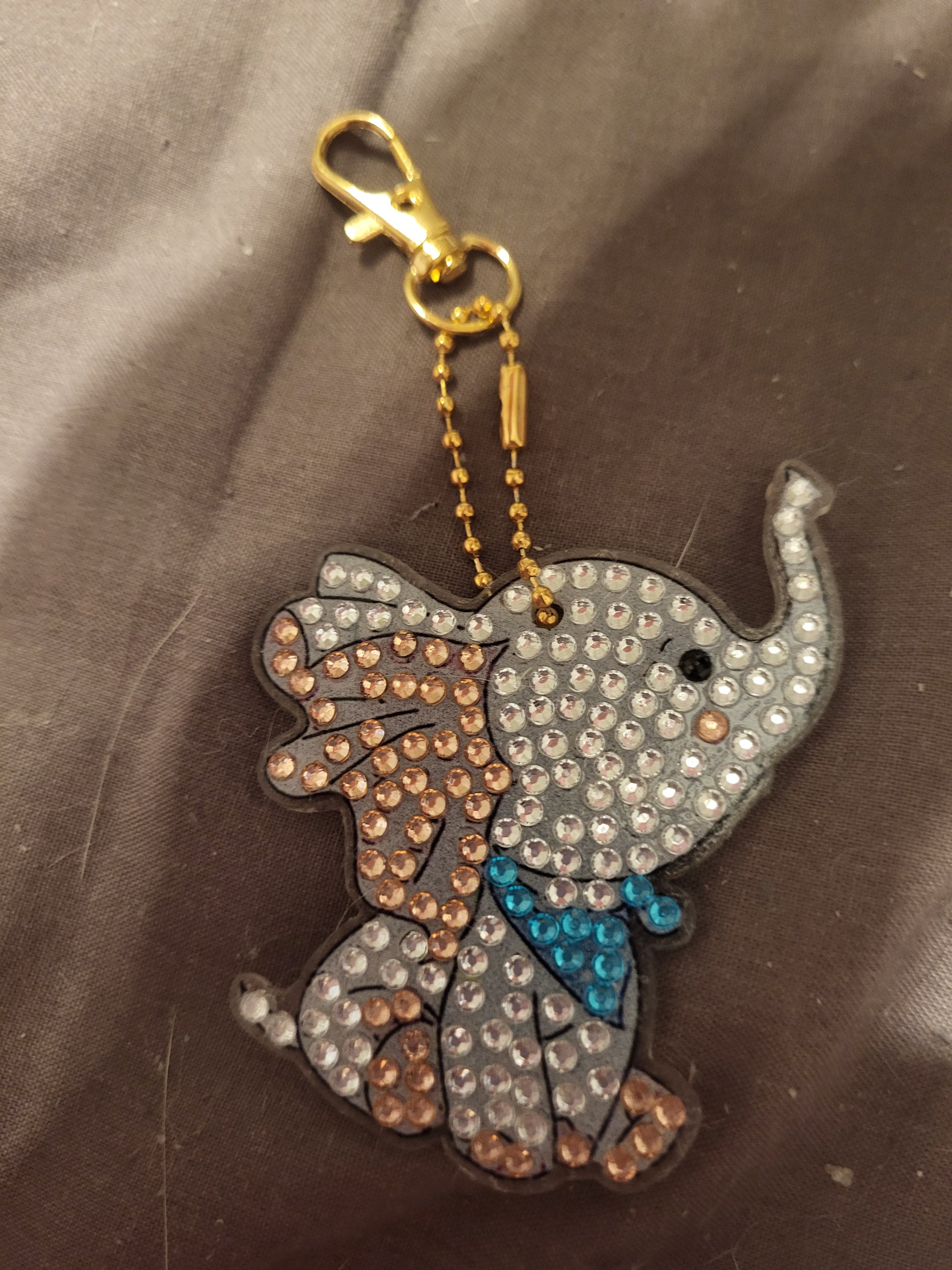 Elephant shaped keychain. Same design on both sides. Gold chain provided as shown in photo