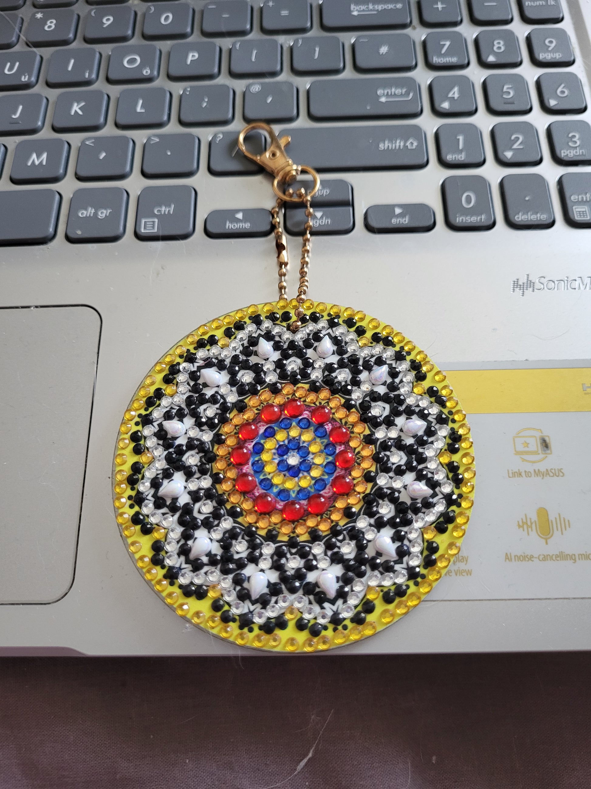 Circular Handbag charm - Multicoloured design is the same on both sides